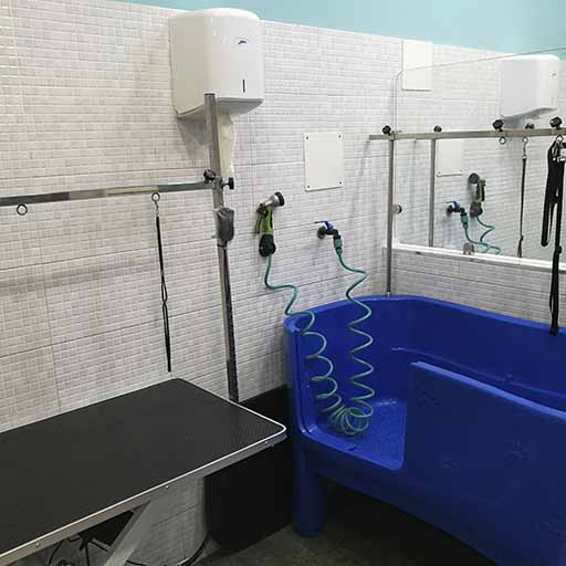 Con autolavado nos referimos a que te ofrecemos un box completo de peluquería para ocuparte del lavado de tu mascota, podrás lavar a tu perro, secar, peinar, desenredar, cortar… En el lavadero de mascotas tú serás el peluquer@ de tu perro, ya sea sól@ o acompañado ¡a los niños les encanta! En cada box de autolavado hay suficiente espacio para que podáis realizar el servicio entre dos o tres personas.